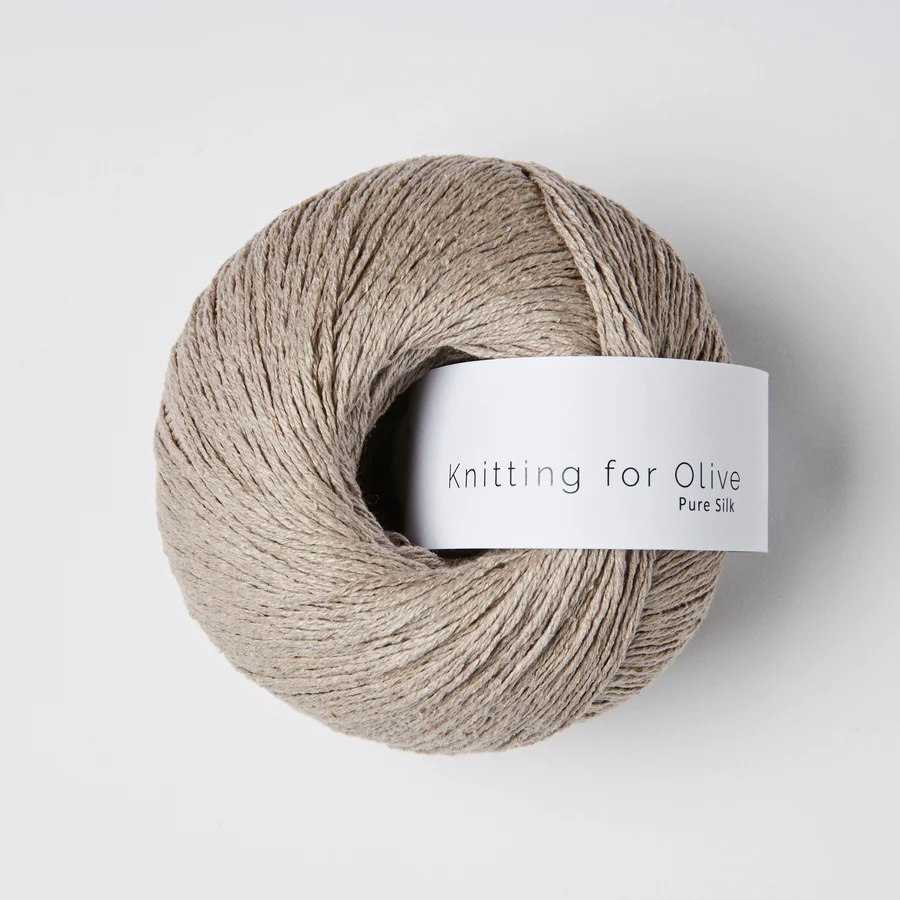 De Pure Silk van het Deense wolbedrijf Knitting for Olive is een zacht, exclusief garen van pure bourettezijde (ruwe zijde) geproduceerd uit zijdevezels die zijn verzameld uit cocons nadat de popjes tot vlinders zijn uitgegroeid.