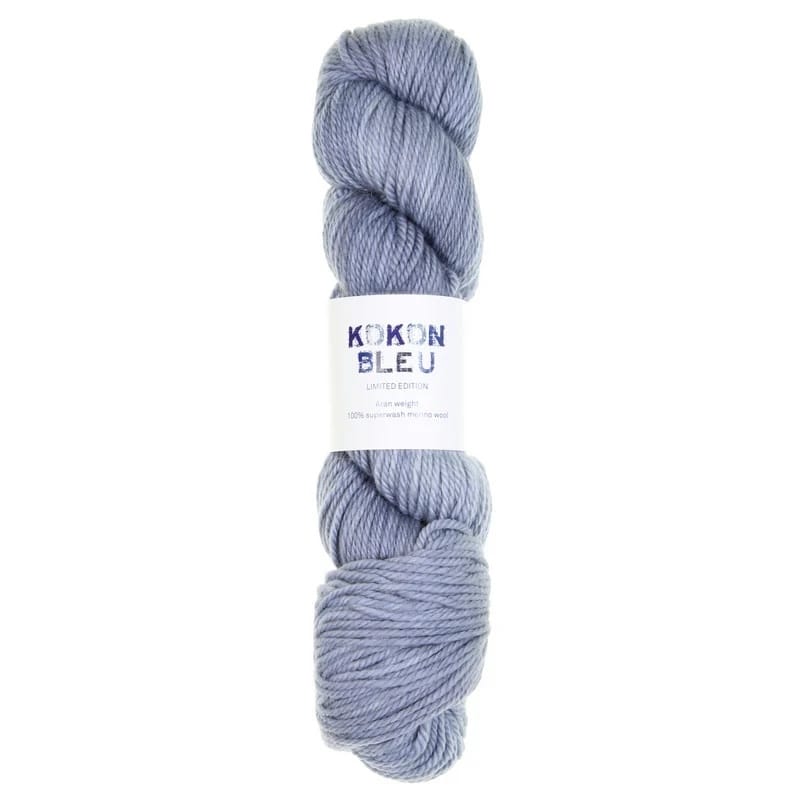 Michelle van KOKON Yarns verft in de prachtigste blauw tinten. Kokon Blue is limited edition luxe handgeverfd garen in een serie met heel veel blauwtinten, waarmee je de mooiste sjaals en truien kunt breien. De aran base is DK weight 100% merino (non-superwash).