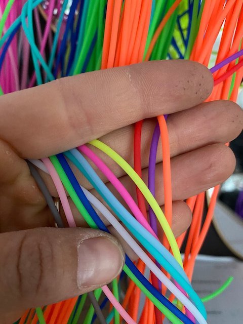 Twee super handige neon draden van 150 cm lang om projecten tijdelijke op te zetten. Je kunt eenvoudig je breinaalden erop bevestigen en door je steken halen. Om even te passen of om bijvoorbeeld je mouwen apart te zetten.