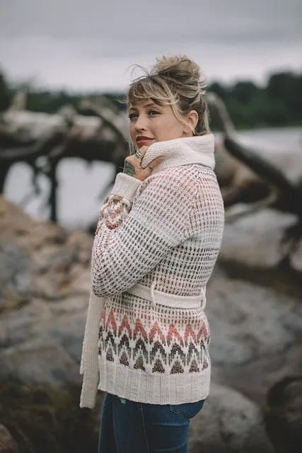 This sweater is intended to be worn with approximately 5-15 cm positive ease. Sample is shown in Size 2 on a 89 cm bust.